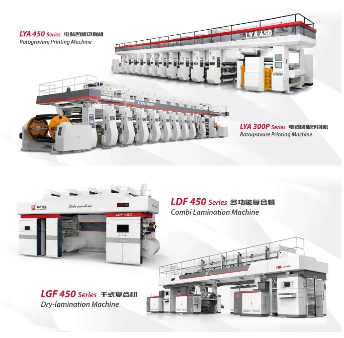 其中,公司最新研發(fā)的LDF450型多功能復(fù)合機(jī)以及LGF450型干式復(fù)合機(jī)受到了很多新老客戶的關(guān)注,該機(jī)型最高機(jī)械速度為450m/min,支持無溶劑/網(wǎng)線輥/半柔版/定點(diǎn)涂布等多種涂布方式任意切換,實(shí)現(xiàn)一機(jī)多用,可以為客戶節(jié)約更多的成本,實(shí)現(xiàn)更高的經(jīng)濟(jì)效益。