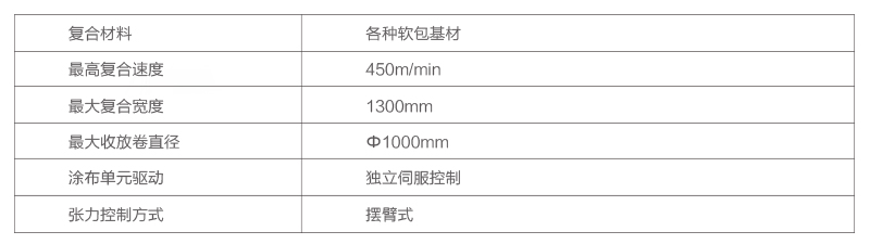 無溶劑復合機主要結(jié)構(gòu)特點:1.收放卷:可實現(xiàn)無軸雙向收放材料,并采用了通過歐洲進口的直流母線運動控制器控制,有效的保證了張力控制的穩(wěn)定性與高精度;無溶劑復合機涂.............